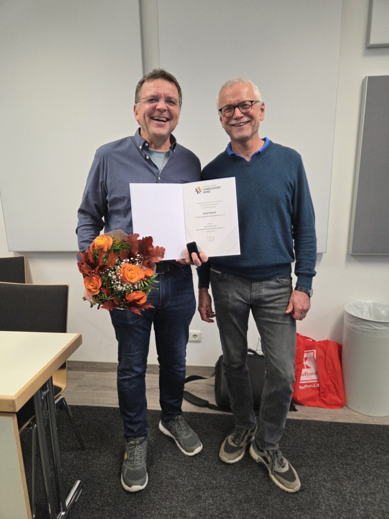 Im zweiten Teil des Landestauchsporttages ging es dann unter anderem um Ehrungen. Eine ganz besondere Auszeichnung – die Ehrennadel des Landessportbundes in Gold – hat in diesem Jahr Gerd Maack erfahren. Der Landessportbund hat Gerd für seine langjährige und umfassende Arbeit im Umweltbereich geehrt, aber auch für seinen Beitrag zur Entwicklung seines Vereins (Edderitz/Köthen) und unseres Verbands. Beispielhaft möchten wir die beispielhafte Vernetzung von Gerd mit den umliegenden Landesverbänden und dem VDST nennen, oder seine intensive Mitarbeit bei der Ausbildung von Trainern und Tauchlehrern.